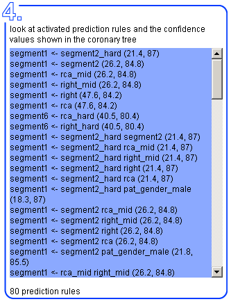 - Start guided review. Your current labeling will be analyzed and prediction rules are searched that predicts plaques in unlabeled segments of the coronary artery tree.