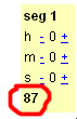This is done by clicking the "+" or "-" symbol of the desired plaque type (h=hard/calcified m=mixed, s=soft/noncalcified) within the corresponding segment. The following example shows a selected hard/calcified plaque within segment 2 of the coronary artery tree.